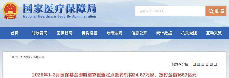 4月16日,國家醫(yī)保局發(fā)布《2025年1-3月醫(yī)?;鸺磿r(shí)結(jié)算覆蓋定點(diǎn)醫(yī)藥機(jī)構(gòu)24.67萬家,撥付金額1657億元》,介紹國內(nèi)醫(yī)保即時(shí)結(jié)算模式推行情況。