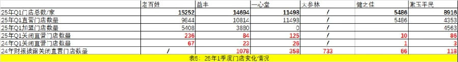 據(jù)賽柏藍統(tǒng)計,2025年第一季度,老百姓、益豐、一心堂、大參林、漱玉平民、健之佳六大上市連鎖藥店關閉直營門店541,各大連鎖關店的數(shù)量均大于2024年第一季度2024年全年,六大上市連鎖關閉直營門店2353