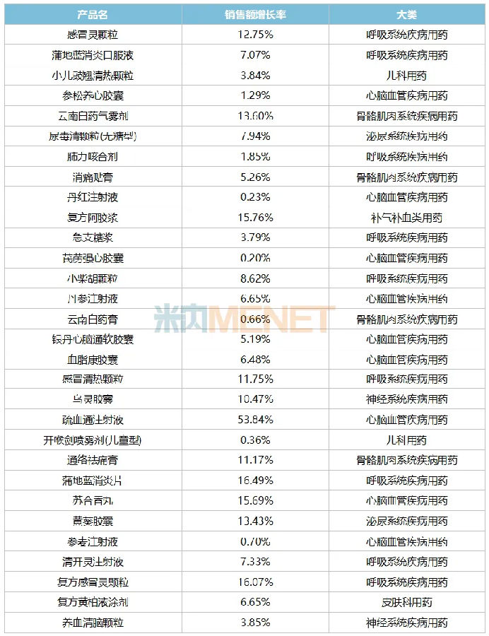 表3:2024年部分銷售額正增長的超10億中成藥
