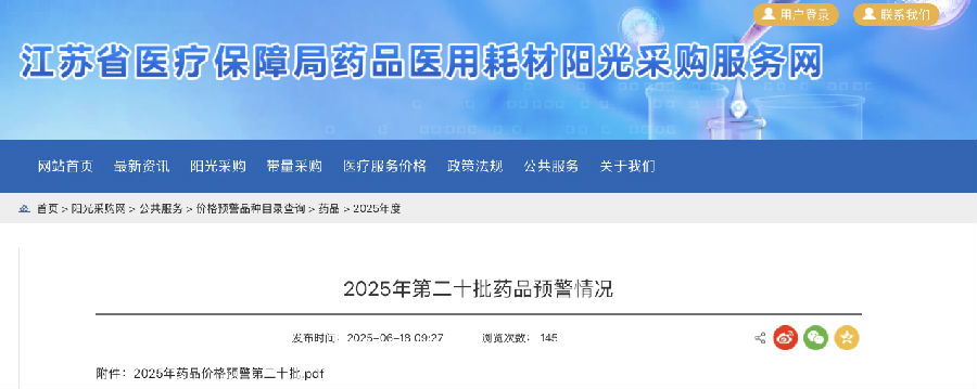 據(jù)賽柏藍統(tǒng)計,僅6月份,江蘇省就對94個藥品發(fā)出價格預(yù)警,平均一批預(yù)警藥品約24個;2025年以來江蘇省已經(jīng)對649個藥發(fā)出預(yù)警,