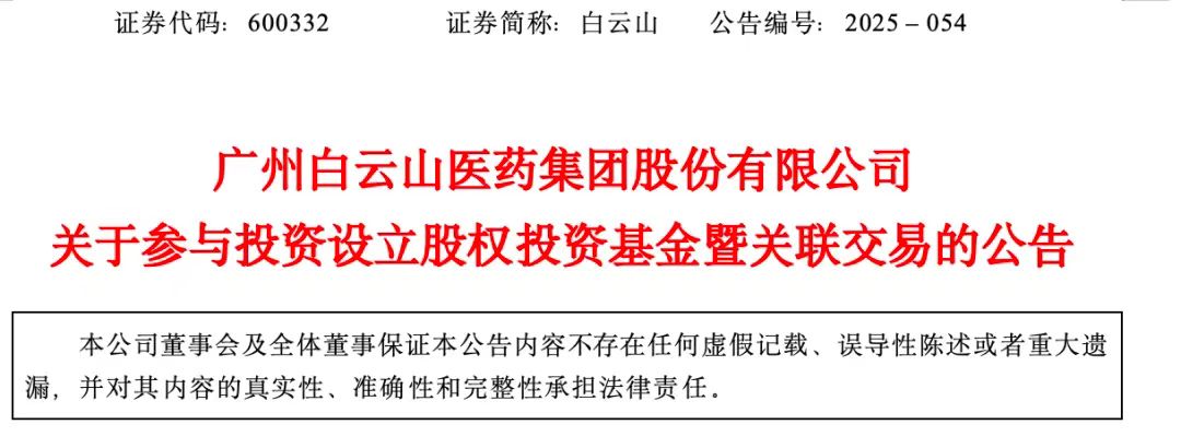 醫(yī)藥投融資熱潮再起!繼“華潤系”參投基金押注生物藥后,廣州白云山擬出資14.985億元入局。 01 認繳14.985億 廣州白云山布局生物醫(yī)藥 7月25日,廣藥旗下上市公司廣州白云山醫(yī)藥集團股份有限公司(以下簡稱“白云山”)發(fā)布公告稱, 擬作為有限合伙人以自有資金出資14.985億元參與設(shè)立廣州廣藥基金二期股權(quán)投資合伙企業(yè)(有限合伙)(擬定名,具體以企業(yè)登記機構(gòu)核準的名稱為準)。 本次白云山擬出資金額占廣藥基金二期認繳出資總額99.90%,剩余0.015億元由廣州廣藥資本私募基金管理有限公司(以下簡稱“廣藥資本”)認繳,占比0.10%。基金總認繳出資額為15.00億元,全部為貨幣出資。 廣藥資本是廣藥集團持股80%的控股子公司,也是廣藥基金二期管理人。白云山副董事長程寧擔任廣藥資本董事長,因此白云山這次認購廣藥基金二期份額構(gòu)成關(guān)聯(lián)交易。 基金將通過直接或間接的方式用于開展生物醫(yī)藥領(lǐng)域的股權(quán)投資。主要圍繞白云山的戰(zhàn)略規(guī)劃,通過子基金投資、項目直接投資等方式投向醫(yī)藥、醫(yī)療器械、醫(yī)療服務(wù)等生物醫(yī)藥與健康領(lǐng)域。 傳統(tǒng)業(yè)務(wù)承壓下,這家擁有13家中華老字號、長期以大南藥為核心利潤支柱的醫(yī)藥巨頭將目光投向了具有增長潛力的生物醫(yī)藥賽道,并開始著力提升資本運營能力。 2024年,白云山營收穩(wěn)健但利潤承壓——2024年營收749.92億元,與2023年相比波動不大;不過,利潤僅有36.07億元,同比減少29.41%;歸母凈利潤28.35億元,同比減少30.09%。 業(yè)績下滑主要受多重原因沖擊,如有效需求不足、行業(yè)加速變革、行業(yè)政策變化、市場競爭激烈等。2025年白云山在資本運營方面規(guī)劃了三大方向: 一是,進一步加強市值管理工作與制度化建設(shè),加強 ESG 管理體系建設(shè)與完善,努力提高投資者回報,提升公司境內(nèi)外的資本市場形象; 二是,積極構(gòu)建“產(chǎn)業(yè)+科技+金融 ”完整鏈條,以產(chǎn)業(yè)基金加快對創(chuàng)新項目投資,實現(xiàn)對生物醫(yī)藥領(lǐng)先賽道、優(yōu)勢細分領(lǐng)域的前瞻性布局,分類推動各業(yè)務(wù)投資并購工作; 三是,加快推進醫(yī)藥公司新三板掛牌并擇機到北京證券交易所上市工作。 02