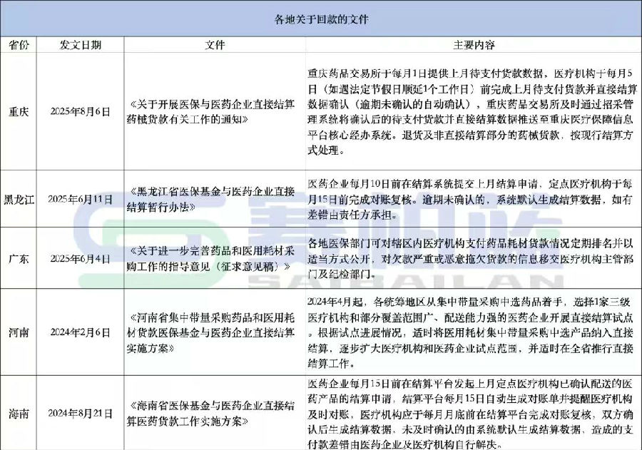 集采藥品耗材、國(guó)談藥回款難問題,全部破解時(shí)間將至。 01 醫(yī)保直接結(jié)算推進(jìn)提速 集采內(nèi)回款效率迎來突破 根據(jù)國(guó)家醫(yī)保局要求,2025年全國(guó)基本實(shí)現(xiàn)集采藥品耗材、國(guó)談藥的直接結(jié)算,2026年全國(guó)全面實(shí)現(xiàn)集采藥品耗材、國(guó)談藥的直接結(jié)算。 當(dāng)前已進(jìn)入8月末,距離 “全國(guó)全面實(shí)現(xiàn)集采藥品耗材、國(guó)談藥直接結(jié)算” 的最終目標(biāo)時(shí)限已進(jìn)入關(guān)鍵沖刺階段,各項(xiàng)配套工作推進(jìn)節(jié)奏明顯加快。 近日,2025年全國(guó)醫(yī)療保障工作年中座談會(huì)在陜西召開,會(huì)議要求,逐步擴(kuò)大醫(yī)?;饘?duì)醫(yī)藥機(jī)構(gòu)即時(shí)結(jié)算范圍。 從階段性成效來看,截至6月底,全國(guó)超90%的統(tǒng)籌地區(qū)實(shí)現(xiàn)即時(shí)結(jié)算,撥付時(shí)限壓縮至申報(bào)后20個(gè)工作日內(nèi)。與此同時(shí),醫(yī)?;饘?duì)醫(yī)藥集采企業(yè)直接結(jié)算推進(jìn)同樣成效顯著,平均結(jié)算周期壓縮至30天以內(nèi)。 據(jù)賽柏藍(lán)觀察,截至目前,全國(guó)已有多個(gè)省份及統(tǒng)籌地區(qū)率先響應(yīng)國(guó)家要求,發(fā)布了針對(duì)醫(yī)保與醫(yī)藥企業(yè)直接結(jié)算的地方性實(shí)施細(xì)則或推進(jìn)方案。 8月27日,重慶市醫(yī)保局發(fā)布《關(guān)于開展醫(yī)保與醫(yī)藥企業(yè)直接結(jié)算藥械貨款有關(guān)工作的通知》的政策解讀,重慶藥品交易所每月1日提供上月待支付貨款數(shù)據(jù),醫(yī)療機(jī)構(gòu)于每月5日前完成上月待支付貨款并直接結(jié)算數(shù)據(jù)確認(rèn)。這一政策自9月15日起執(zhí)行。 8月26日,天津市醫(yī)藥采購(gòu)中心發(fā)布《關(guān)于藥品、醫(yī)用耗材集采中選品種2025年第8期直接結(jié)算》的通知,要求醫(yī)保定點(diǎn)醫(yī)藥機(jī)構(gòu)在8月27日-8月30日24:00完成本期待結(jié)算明細(xì)表網(wǎng)上確認(rèn);8月31日—9月3日12:00,經(jīng)營(yíng)企業(yè)完成本期待結(jié)算明細(xì)表網(wǎng)上確認(rèn)。 從地方反饋的實(shí)效來看,不少省份已明確體現(xiàn)出回款速度加快的積極變化。 例如,自5月以來,浙江省藥械采購(gòu)平臺(tái)設(shè)置集采品種和國(guó)談藥品結(jié)算專區(qū),至6月30日,1182家醫(yī)保定點(diǎn)機(jī)構(gòu)完成結(jié)算金額近58億元,按時(shí)結(jié)算率99.90%,其中1136家實(shí)現(xiàn)100%按時(shí)結(jié)算;江蘇鹽城市第一人民醫(yī)院自今年1月以來,開展醫(yī)保基金即時(shí)結(jié)算改革試點(diǎn),醫(yī)保基金結(jié)算縮短到一個(gè)工作日,日均現(xiàn)金流增加200萬元,到目前已累計(jì)撥付1.5億元。 不過,行業(yè)反饋呈現(xiàn)明顯差異化特征,集采內(nèi)藥品回款改善顯著,但集采之外的普通藥品仍陷“回款難、回款慢” 困境。 黑龍江一醫(yī)藥商業(yè)企業(yè)人士向賽柏藍(lán)表示,相較于一年前,其手上集采藥品的回款已基本追回,“主要是政策壓力傳導(dǎo)到位,且集采藥品本身貨款規(guī)模相對(duì)可控,因此回款速度明顯加快”,但該人士同時(shí)指出,集采范圍之外的普通藥品,回款難、回款慢的壓力依然較大,成為當(dāng)前結(jié)算改革尚未完全覆蓋的領(lǐng)域。 02 集采外藥品回款難仍是長(zhǎng)期痛點(diǎn) 多因素疊加影響回款周期 事實(shí)上,藥品回款難一直是行業(yè)長(zhǎng)期存在的核心痛點(diǎn)。從醫(yī)院的資金壓力、醫(yī)保結(jié)算的滯后性到流通環(huán)節(jié)的層層墊付以及企業(yè)自身的管理問題多重因素疊加下,回款周期不斷拉長(zhǎng)。 集采之外藥品的回款不適用集采的 “統(tǒng)一回款周期”,而是由參與方通過合同約定,醫(yī)院或商業(yè)公司未按合同約定時(shí)間付款,藥品入庫(kù)數(shù)量、破損理賠、發(fā)票問題導(dǎo)致付款金額與約定不符以及藥品配送延遲、質(zhì)量問題與回款掛鉤等問題均會(huì)影響回款進(jìn)度。