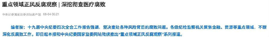 中紀委點名,嚴查醫(yī)藥腐敗!
